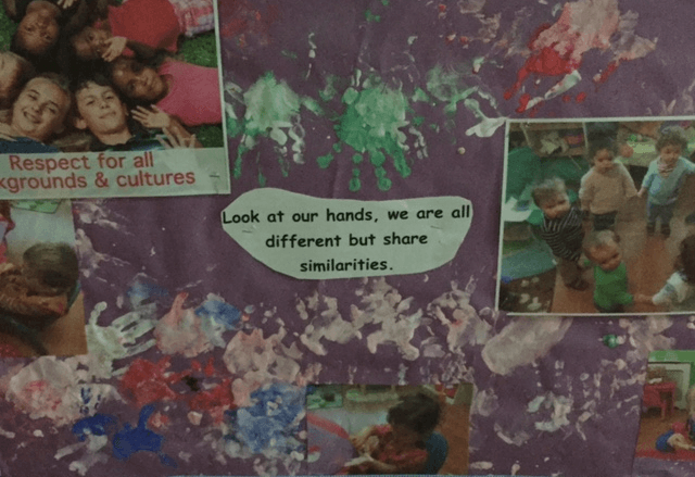 - During circle time and activities, we reinforce our values on diversity and acceptance of everyone and also accepting others who may be different from you and respecting their values and beliefs.
